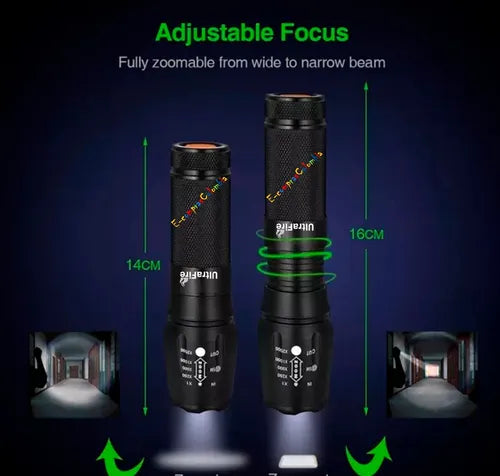 · Fabricada en aleación de aluminio de alta resistencia, es una linterna táctica ligera pero robusta, diseñada para soportar el uso exigente en condiciones de camping, pesca, cacería o defensa personal. Además, es resistente al agua (no sumergible) y cuenta con una vida útil del LED de hasta 100.000 horas.