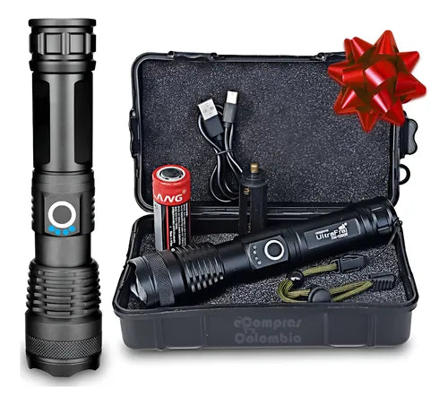 Linterna LED 30000 Lúmenes Recargable Zoom Ultra Potente con Estuche